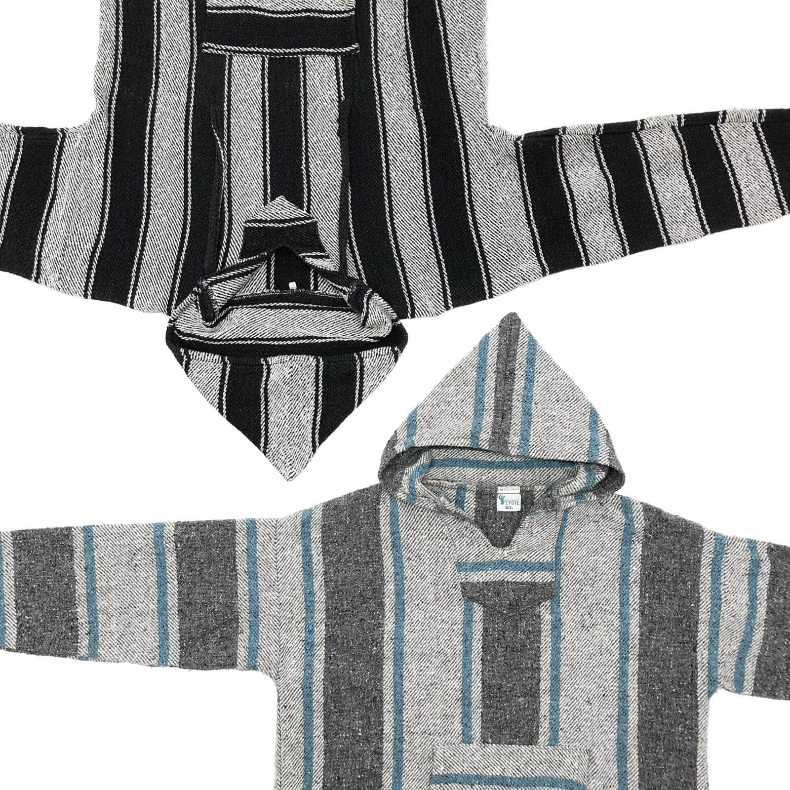 Baja hoodies, also known as “Baja jackets” originated in Mexico in the 1970s. They became popular with surfers and festival-goers in California during the 80s and 90s, known for their distinctive woven patterns, soft cotton-acrylic blend, and relaxed, unisex fit.