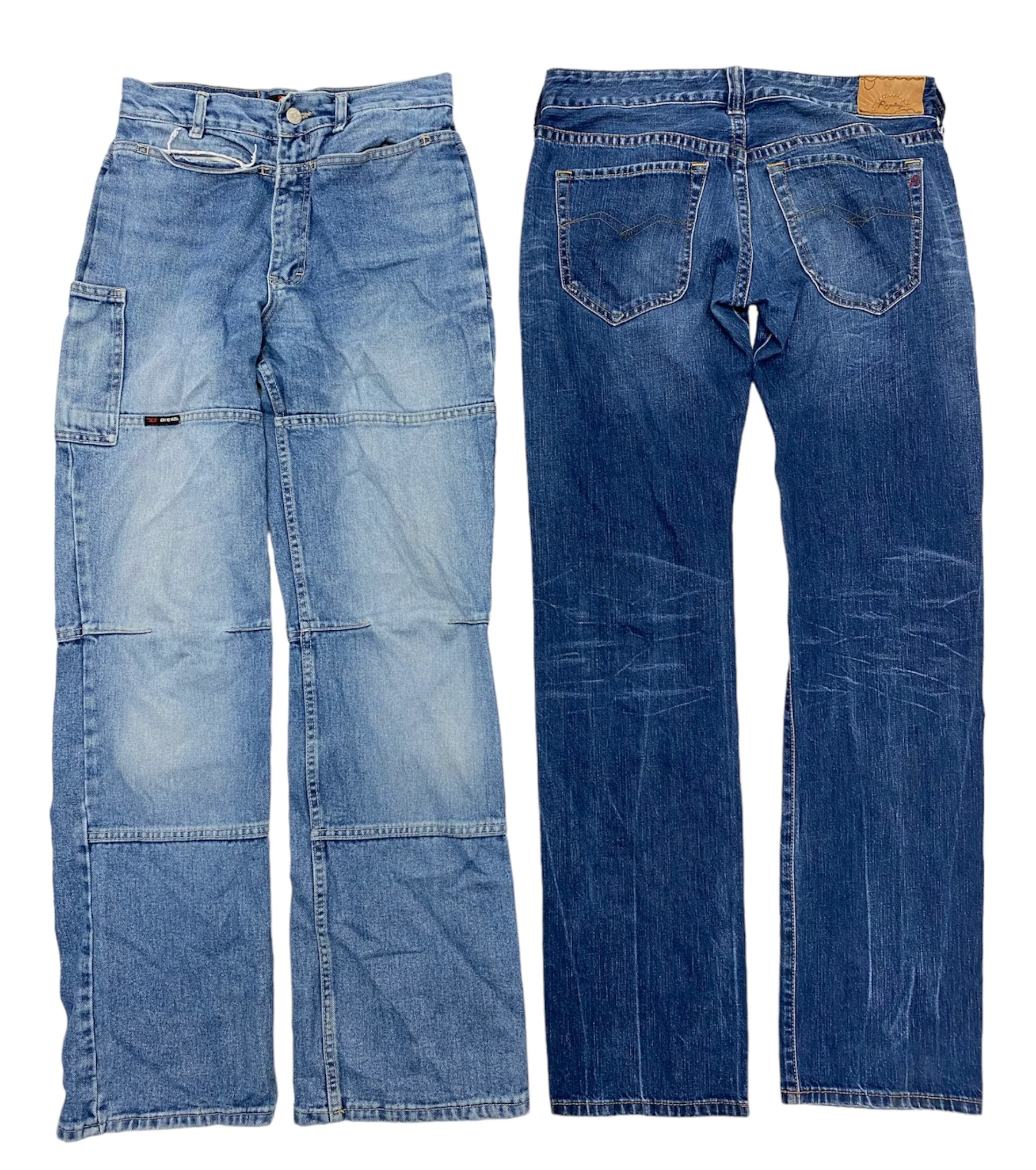 Discover a curated mix of iconic Y2K branded jeans, perfect for retailers looking to tap into the ongoing demand for retro denim. Each wholesale lot includes a unique assortment of vintage 2000s jeans from sought-after labels, offering exceptional variety and resale value for your shop.